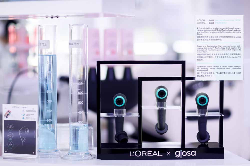 ลอรีอัล วอเทอร์ เซฟเวอร์ หนึ่งในเทคโนโลยี Beauty Tech ของลอรีอัล กรุ๊ป ที่ได้รับการพัฒนาขึ้นจากความร่วมกับโจซา (Gjosa) บริษัทนวัตกรรมด้านสิ่งแวดล้อม เพื่อรับมือกับภาวะขาดแคลนน้ำทั่วโลกที่ขยายวงมากยิ่งขึ้น เทคโนโลยีดังกล่าวได้รับการพัฒนาขึ้นเพื่อการใช้งานในร้านซาลอน และเปิดตัวไปเมื่อต้นปีที่แล้ว โดยลอรีอัล วอเทอร์ เซฟเวอร์ ถูกจัดส่งไปยังซาลอนต่าง ๆ ในโครงการนำร่องแบบไม่คิดค่าใช้จ่าย ฝักบัวในระบบลอรีอัล วอเทอร์ เซฟเวอร์ จะถูกติดตั้งไว้ที่อ่างสระผม โดยมีช่อง 3 ช่องสำหรับใส่แชมพู ครีมนวดผม และครีมบำรุงผม ซึ่งจะถูกปล่อยออกไปในกระแสน้ำโดยตรง เทคโนโลยีดังกล่าวทำงานด้วยการผลิตหยดน้ำที่แตกตัวเป็นไอออนในระดับไมโครแล้วรวมตัวกันจนเป็นสายน้ำที่มีแรงดันสูง จึงทำให้สามารถลดปริมาณการใช้น้ำลงได้อย่างมากต่อการสระผมหนึ่งครั้ง