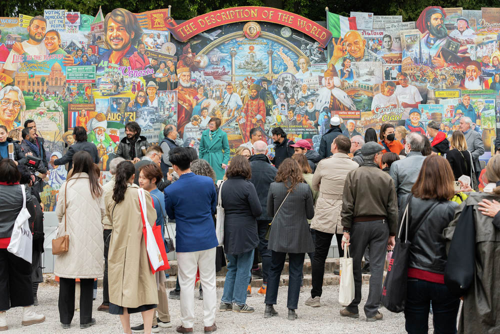 ในส่วนของศิลปินชาวไทยเพียงหนึ่งเดียว นาวิน ลาวัลย์ชัยกุล กับผลงาน THE DESCRIPTION OF THE WORLD นำเสนอมุมมองของความหลากหลายของผู้คนในเวนิส เขาได้เชื่อมโยงถึงตำนานการเดินทางของมาร์โค โปโล ผ่านเรื่องเล่าสืบต่อกันมา และค้นคว้าผ่านหนังสือมากมาย ผลงานชิ้นนี้นับว่าเป็นงานศิลป์ที่ก้าวข้ามอุปสรรคทางเชื้อชาติ เวลา และวัฒนธรรม นำเสนอมุมมองที่ไม่เหมือนใครเกี่ยวกับประสบการณ์ของผู้อพยพด้วยภาพผลงานขนาดใหญ่อันสวยงามและเป็นเอกลักษณ์ เมื่อถูกนำมาจัดแสดงที่นี่ยิ่งส่งพลังแห่งการสื่อสารแห่งชีวิตได้อย่างทรงพลัง หากผู้ชมได้ศึกษาผลงานชิ้นนี้อย่างใกล้ชิด จะได้เห็นจดหมายที่นาวินเขียนถึงมาร์โค โปโล โดยเล่าเรื่องการเดินทางจากตะวันออกสู่ตะวันตกในห้วงเวลาห่างกันถึง 700 ปี ผลงานแบบหลายเลเยอร์ที่จัดแสดงนี้จะกระตุ้นประสาทสัมผัสของผู้ชมได้อย่างถึงอรรถรส ทั้งการชมชิ้นงาน ฟังเรื่องราวและอ่านเนื้อความในผลงานสุดโดดเด่นนี้ อีกทั้งตามธรรมเนียมของ Swatch แล้ว นาวินในฐานะศิลปินที่ได้จัดแสดงผลงานที่ Giardini จะเป็นผู้รังสรรค์นาฬิการุ่นพิเศษให้กับ Swatch ซึ่งจะเปิดตัวภายหลังในปี 2022 ที่ Biennale Arte