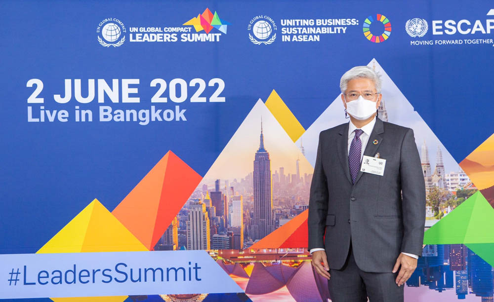 โดยปีนี้ถือเป็นครั้งแรกที่ประเทศไทยได้รับเกียรติร่วมเป็นเจ้าภาพจัดเวทีระดับเอเชียแปซิฟิก UNGC Leaders Summit 2022 : Sustainability in ASEAN โดยนายนพปฎล เดชอุดม ประธานคณะผู้บริหารด้านความยั่งยืนองค์กร เครือเจริญโภคภัณฑ์ และเลขาธิการสมาคมเครือข่ายโกลบอลคอมแพ็กแห่งประเทศไทย ได้เข้าร่วมประชุมในฐานะผู้นำด้านความยั่งยืนจากภูมิภาคเอเชียแปซิฟิกและผู้นำธุรกิจไทย ร่วมกับ นางสาวรื่นวดี สุวรรณมงคล เลขาธิการ สำนักงาน ก.ล.ต และนายลี จอร์จ แลม (Lee George Lam) Chair of the ESCAP Sustainable Business Network (ESBN) ที่ร่วมแลกเปลี่ยนความรู้ ประสบการณ์ พร้อมกระตุ้นการแก้ปัญหาในระดับท้องถิ่นและระดับภูมิภาคอาเซียนอย่างจริงจัง เพื่อบรรลุเป้าหมายหลักการพัฒนาความยั่งยืน (SDGs) โดยเฉพาะอย่างยิ่งการหาแนวทางร่วมกันในการเดินหน้าสู่เป้าหมาย Net Zero ซึ่งเป็นสิ่งที่ UN Global Compact มองว่าเป็นวาระสำคัญของโลกที่ต้องได้รับความร่วมมือจากเครือข่ายในการแก้ปัญหาอย่างเร่งด่วน ทั้งนี้ได้รับเกียรติจากนางสาวกีต้า ซับบระวาล (Gita Sabharwal) ผู้ประสานงานสหประชาชาติประจำประเทศไทย เป็นผู้กล่าวปิดวงเสวนา