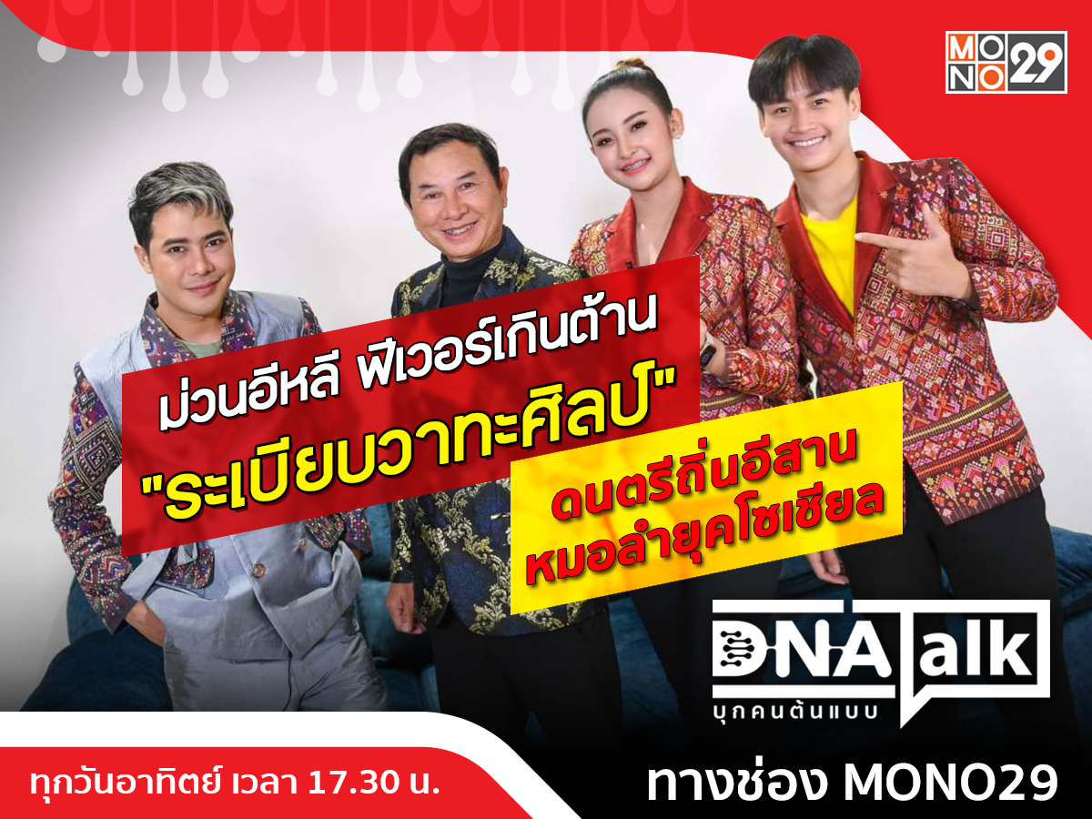 รายการ “DNA TALK บุกคนต้นแบบ” ในวันอาทิตย์นี้ (19 มิ.ย.) พิธีกร “ได๋ ไดอาน่า จงจินตนาการ” พาผู้ชมไปบุกค้นหาดีเอ็นเอแห่งความสำเร็จ กับวงหมอลำที่กำลังมาแรงแซงทุกเวที “ระเบียบวาทะศิลป์” ศิลปินมหาชนที่ได้ทัพหน้าทั้ง 4 คนมาให้สัมภาษณ์ในรายการ ได้แก่ “พ่อเปีย สุมิตรศักดิ์ พลล้ำ” ผู้บริหารทายาทรุ่นที่ 2 หัวหน้าคณะหมอลำระเบียบวาทะศิลป์, “เบลล์ ฐปนรรฆ์ พลล้ำ” นักร้องนำทายาทรุ่นที่ 3 คณะหมอลำระเบียบวาทะศิลป์ , “แบม กฤษณีรัตน์” นางเอกคณะหมอลำระเบียบวาทะศิลป์ และ “ต้าวหยอง ยุคลเดช ปัจฉิม” แดนเซอร์คณะหมอลำระเบียบวาทะศิลป์ หลังยกระดับดนตรีถิ่นอีสานให้กลับมาม่วนอีหลีฟีเวอร์อีกครั้ง โดย พ่อเปีย เผยถึงวิธีการปรับตัวให้ประสบความสำเร็จครั้งนี้ว่า