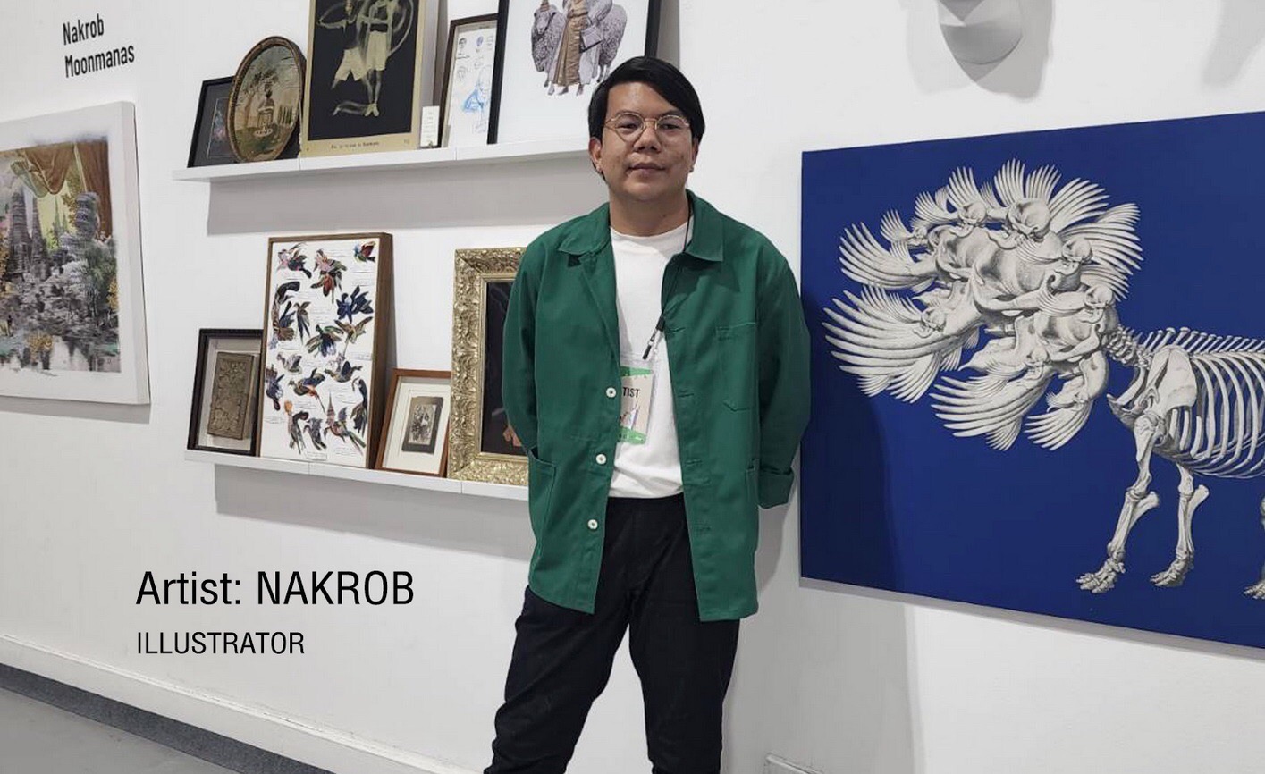 ‘Nakrob Moonmanas’ หรือ นักรบ มูลมานัส คือศิลปินแนวคอลลาจ ที่โดดเด่นด้านการสร้างผลงานด้วยการนำ “ความเป็นไทย” มาเป็นหลักของการทำงาน ภายใต้สไตล์ที่จัดจ้านเตะตาแต่แฝงด้วยความหมายลุ่มลึก ผลงานรังสรรค์ของเขากำลังเป็นที่นิยมทั้งในหมู่นักสะสมชาวไทยและชาวต่างชาติ