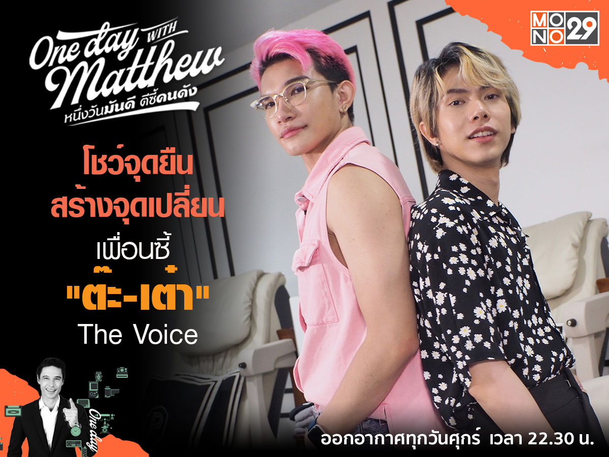 ตกเป็นนักร้องที่ช่วงนี้เป็นที่ Talk of the Town จริง ๆ สำหรับคู่ดูโอ้ LGBTQ+ สายมั่นเสียงดี ต๊ะ-เต๋า The Voice หรือชื่อเต็ม ๆ ต๊ะ ตระการ ศรีแสงจันทร์ และ เต๋า ทัศนัย กิตติรุ่งสุวรรณ จากรายการ The Voice All Stars สองลูกทีมจากโค้ช โจอี้ ที่เสียงดีและดีกรีเอ็นเตอร์เทนเข้าขั้นศิลปิน เผยกลายเป็นเพื่อนรักเสียงดีเคมีตรงกัน เพราะต่างฝ่ายต่างใช้เสียงเพลงสู้ชีวิต ร้องเพลงไล่ล่าความฝันเหมือนกัน ล่าสุดพิธีกรสุดหล่อ แมทธิว ดีน แห่งรายการ “วัน เดย์ วิท แมทธิว หนึ่งวันมันดี ตีซี้คนดัง (One Day With Matthew)” วันศุกร์นี้ (23 ก.ย.) ทางช่อง MONO29 พาทั้งสองไปผ่อนคลายแบบเพื่อนสาว ทำเล็บ สปาเท้า สปามือ ณ ร้าน เพ้นท์ (Paint) เดอะสตรีท รัชดา
