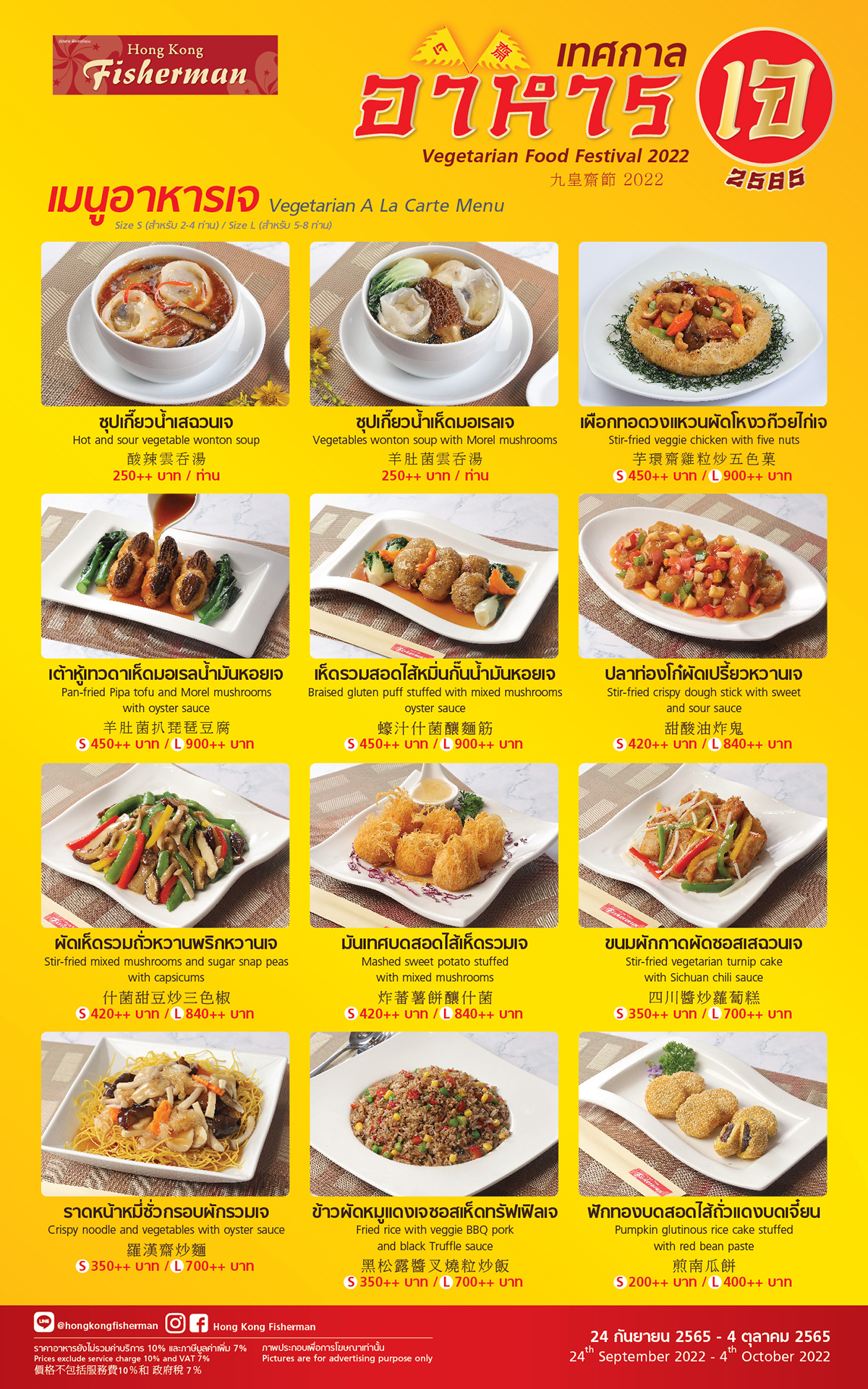 “ฮ่องกง ฟิชเชอร์แมน” ร้านอาหารจีนสไตล์ฮ่องกงขนานแท้ ณ อิมแพ็ค เมืองทองธานี เชิญชวนทุกคนร่วมอิ่มบุญอิ่มใจด้วยการงดเว้นการรับประทานเนื้อสัตว์ในเทศกาลกินเจประจำปี 2565 โดยเชฟเชา ไท้ ชิง เชฟใหญ่ประจำร้านที่มากด้วยประสบการณ์กว่า 30 ปี ได้รังสรรค์หลากหลากหลายเมนูอร่อยจากวัตถุดิบคุณภาพดีให้ผู้ที่ถือศีลกินเจทุกคนได้ลิ้มลอง ห้ามพลาด 12 เมนูอะลาคาร์ตเจ และ 8 เมนูติ่มซำเจ ในราคา 90 - 900 บาท ตั้งแต่วันที่ 24 กันยายน – 4 ตุลาคม ศกนี้