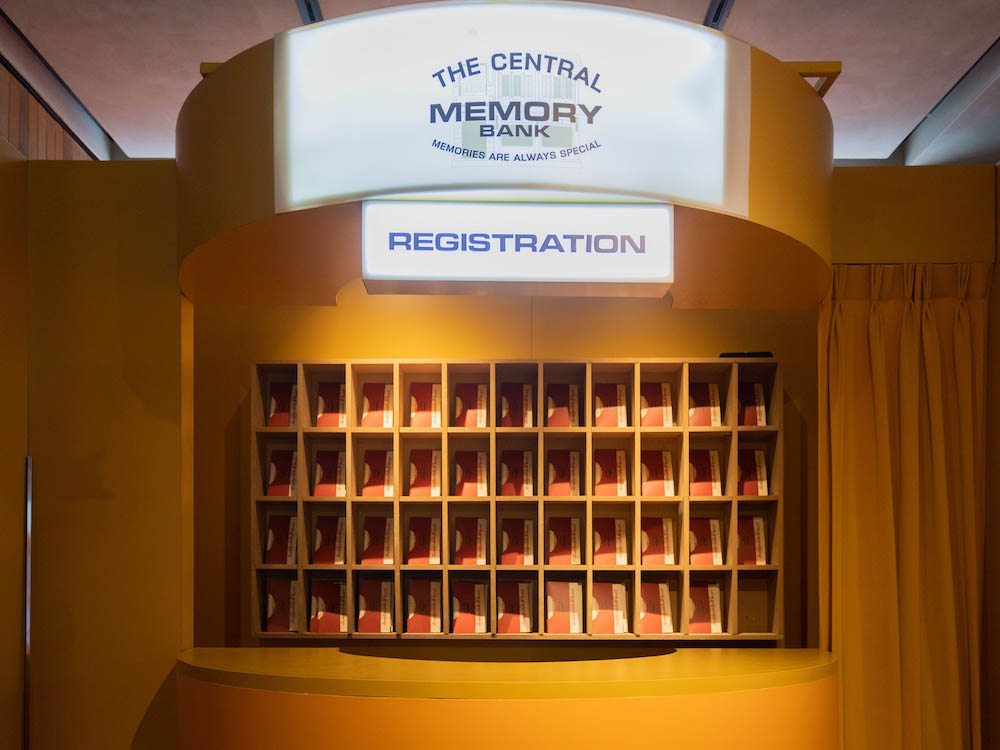 โซนที่ 1: Registration - จุดลงทะเบียนสไตล์วินเทจที่รอต้อนรับผู้มาเยือน โดยทุกคนจะได้รับ “Memory Book Bank” สมุดจดบันทึกความทรงจำเล่มสวยพร้อมสติกเกอร์รูปไอเทมที่ชวนให้นึกถึงวัยเด็ก ที่จัดทำขึ้นเป็นพิเศษสำหรับนิทรรศการในครั้งนี้ เพื่อนำไปบันทึกความทรงจำที่ประทับใจภายในงาน