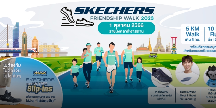 คุณไข่มุกนิลเศรษฐีผู้จัดการประจำส่วนภูมิภาคบริษัทสเก็ตเชอร์ส (ไทยแลนด์) จำกัดกล่าวว่า “ปีนี้นับเป็นปีที่ 4 ที่สเก็ตเชอร์สได้จัดกิจกรรมเดินวิ่ง“SKECHERS FRIENDSHIP WALK 2023” โดยในปีนี้เราตั้งเป้ารับสมัครผู้เข้าร่วมจำนวน 3,000 คนขณะนี้มีผู้สมัครมาแล้วกว่า 30% ซึ่งกิจกรรมครั้งนี้เรารับสมัครตั้งแต่อายุ 6 ขวบขึ้นไปดังนั้นสามารถรวมตัวมาเดินหรือวิ่งเป็นครอบครัวหรือกับเพื่อนๆก็สนุกไม่แพ้กัน ยิ่งถ้าได้สวมใส่รองเท้าคุณภาพดีและใส่สบายก็จะทำให้การออกกำลังกายนั้นสนุกยิ่งขึ้น ซึ่งสเก็ตเชอร์สมีรองเท้าและเครื่องแต่งกายให้เลือกใส่ตามประเภทการใช้งานมากมายทั้งสำหรับการเดินวิ่งเทรลฟิตเนสโยคะและกอล์ฟหรือจะเป็นลุคลำลองสำหรับใส่ประจำวันอาทิ “Skechers Slip-ins: Max Cushioning Premier” ที่ยกระดับความสบายขึ้นไปอีกขั้นโดยไม่ต้องใช้มือช่วยสวมใส่ด้วยการออกแบบที่เป็นเอกสิทธิ์เฉพาะ Heel Pillow™ ช่วยโอบอุ้มเท้าให้มั่นคงพื้นบุนวม ULTRA GO® ซึ่งช่วยให้สวมใส่ได้อย่างง่ายดายและพื้นรองเท้าชั้นในกับเทคโนโลยี Skechers Air-Cooled Memory Foam®