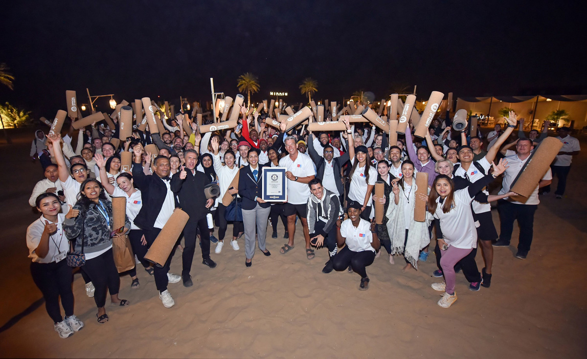 เมื่อช่วงสัปดาห์ที่ผ่านมา พนักงานของกลุ่มบริษัทเอมิเรตส์ (Emirates Group) จำนวนหลายร้อยคน รวมกว่า 144 สัญชาติ มาร่วมออกกำลังกายในคลาสโยคะกลางทะเลทรายดูไบช่วงพระอาทิตย์ตกดิน ซึ่งเป็นการสร้างสถิติใหม่ของ Guinness World Records จากการมีคลาสเรียนโยคะที่มีจำนวนสัญชาติผู้เข้าร่วมมากที่สุดในโลก โดยอีเวนท์ในครั้งนี้เป็นโครงการริเริ่มด้านสุขภาพให้กับพนักงานของกลุ่มบริษัทเอมิเรตส์ เพื่อต้อนรับปีใหม่ด้วยร่างกายที่แข็งแรง