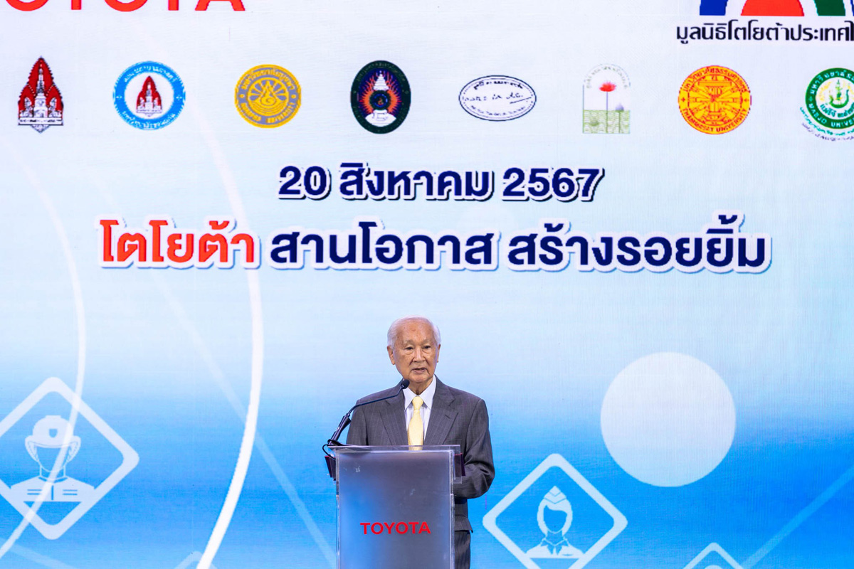 นายประมนต์ สุธีวงศ์ ประธานมูลนิธิโตโยต้าประเทศไทย พร้อมด้วย นายกลินท์ สารสิน ประธานคณะกรรมการ บริษัท โตโยต้า มอเตอร์ประเทศไทย จำกัด และนายโนริอากิ ยามาชิตะ กรรมการผู้จัดการใหญ่ บริษัท โตโยต้า มอเตอร์ประเทศไทย จำกัด ร่วมเป็นเกียรติในพิธีมอบทุนสนับสนุนประจำปี 2567 แก่สถาบันการศึกษาและองค์กรสาธารณกุศล รวมมูลค่า 18.9 ล้านบาท เมื่อวันอังคารที่ 20 สิงหาคม พ.ศ.2567 ณ Toyota ALIVE บางนา