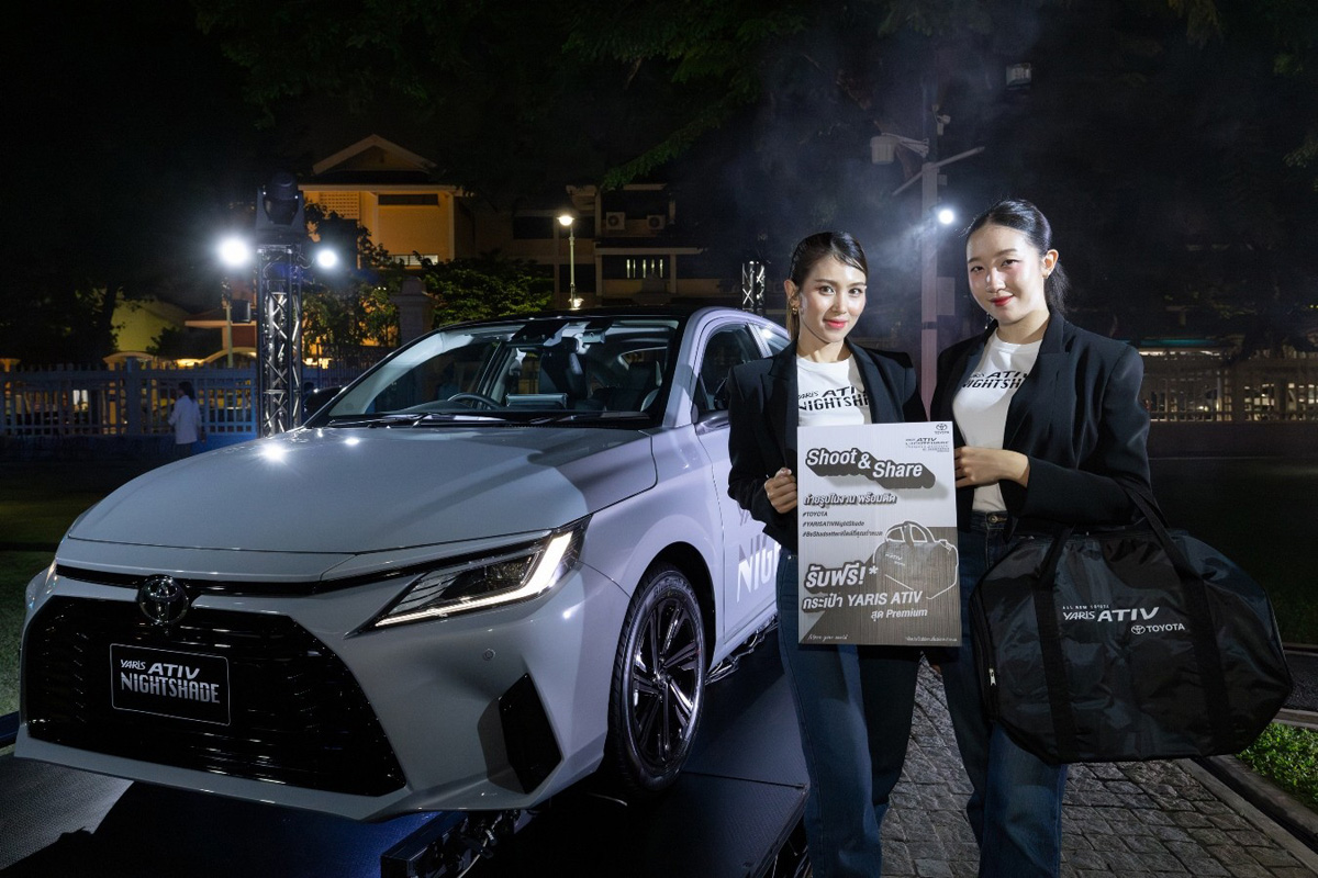 สามารถสัมผัสรถ TOYOTA YARIS ATIV NIGHTSHADE ได้ที่บริเวณมิวเซียมสยาม เดินทางสะดวกเพียงแค่ลงสถานี MRT สนามไชย พร้อมกับรับของที่ระลึกพิเศษได้ง่ายๆ เพียงร่วมกิจกรรมสุดพิเศษ “Shoot & Share: Snap Your SHADE” ถ่ายภาพกับผลงานในสไตล์คุณ พร้อมลงทะเบียนแล้วแชร์ลงโซเชียลมีเดีย และใส่แฮชแท็ก #TOYOTA #YARISATIVNightShade #BeShadesetterสไตล์ที่คุณกำหนด หรือสัมผัสและรับข้อเสนอพิเศษได้ที่โชว์รูมโตโยต้าทั่วประเทศ