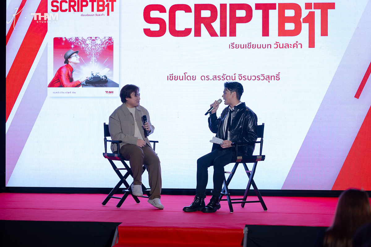 “หนังสือ ScriptBit” พร้อมเชิญ “คุณกอล์ฟ ดร.สรรัตน์ จิรบวรกุล” นักเขียนบทชื่อดัง มาร่วมพูดคุยถึงหนังสือที่ ทำสตูดิโอ ได้ทำการรวบรวมงานเขียนของ ดร.สรรัตน์ ที่ได้ถ่ายทอดความรู้ด้านการเขียนบทแบบเข้าใจง่ายและใช้ได้จริงจากโซเชียลเน็ตเวิร์คส่วนตัว รวมเล่มตีพิมพ์เป็นหนังสือเรียนเขียนบทสำหรับ Script Writer ถ่ายทอดองค์ความรู้เพื่อเป็นแนวทางและแรงบันดาลใจสำหรับนักเขียนบทหน้าใหม่ที่พร้อมก้าวเข้าสู่วงการบันเทิงไทยต่อไป