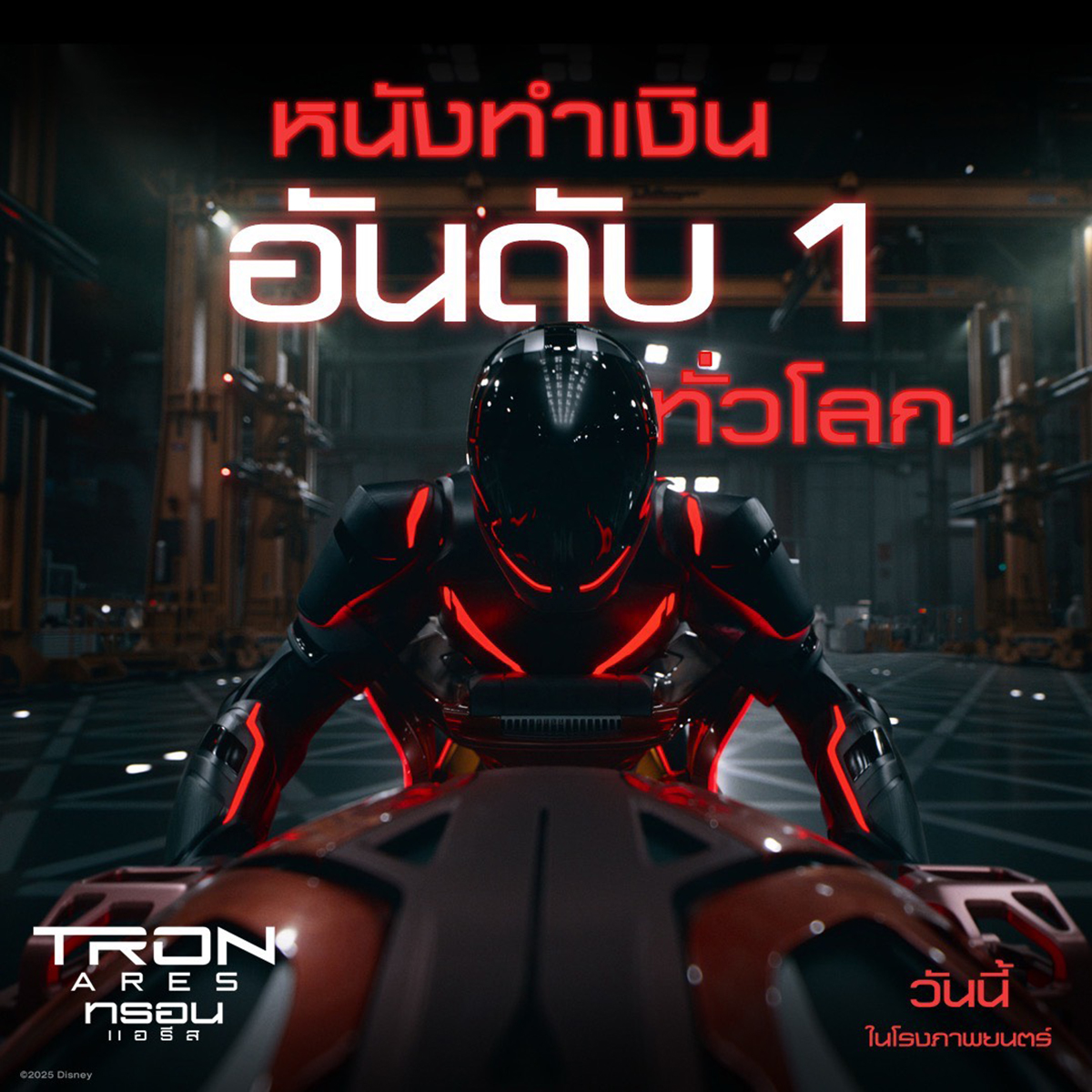 สมกับเป็นภาพยนตร์สุดแรง เมื่อเหล่าเอไออัจฉริยะซิ่งไลท์ไซเคิลพา “Tron: Ares ทรอน แอรีส” ภาพยนตร์แอ็กชันไซไฟแห่งปีจากดิสนีย์ทะยานสู่ตำแหน่งภาพยนตร์อันดับ 1 ทั่วโลก ณ เวลานี้ พร้อมกวาดคำชมในงานภาพ งานเพลง และเนื้อหาสุดล้ำ จากผู้ชมมาได้อย่างท่วมท้น ใครยังไม่ได้ดู ต้องรีบไปเดือดด้วยกันด่วนวันนี้ ในโรงภาพยนตร์ทั่วประเทศ และมันยิ่งกว่า เต็มตากว่าใครในระบบ IMAX