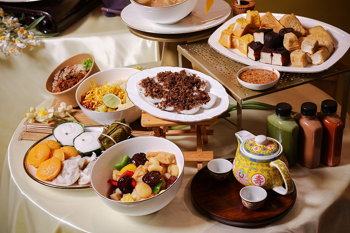 Smile Pung ขนมโบราณเจ้าเก่าในตำนานที่ยกขบวนเมนูเจมาอย่างจุใจ ทั้งอิ่วก้วย กะลอจี้ ขนมผักกาด และขนมเผือก หอมกรุ่นจากเตาทุกชิ้น ทานคู่กับน้ำเต้าหู้ต้มร้อน ๆ ให้ความรู้สึกอุ่นท้องอุ่นใจ