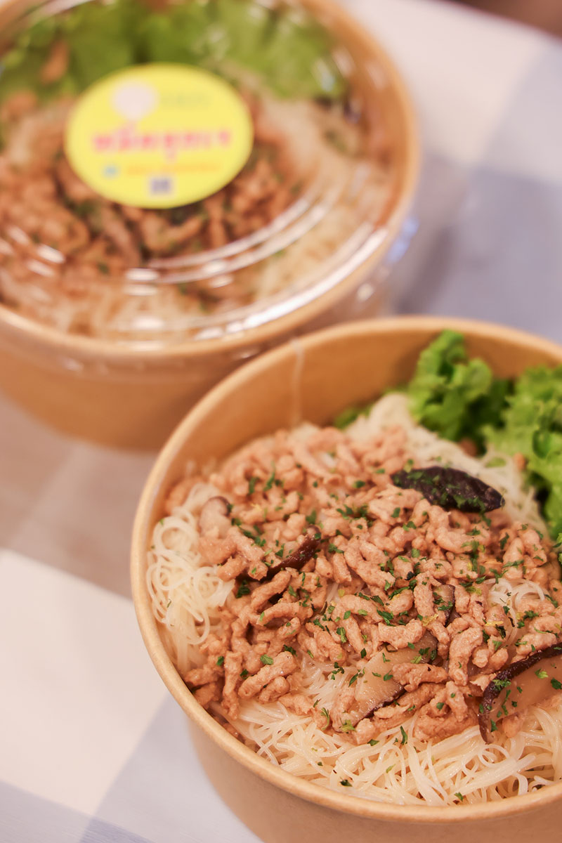 ก๋วยเตี๋ยวสุโขทัยเจ อร่อยกลมกล่อมในแบบต้นตำรับสุโขทัยแท้ เส้นเหนียวนุ่มกำลังดี คลุกเคล้ากับน้ำปรุงรสเจสูตรพิเศษ ให้รสเปรี้ยวหวานเค็มครบเครื่อง พร้อมเครื่องแน่นเต็มชาม รับรองความอร่อย