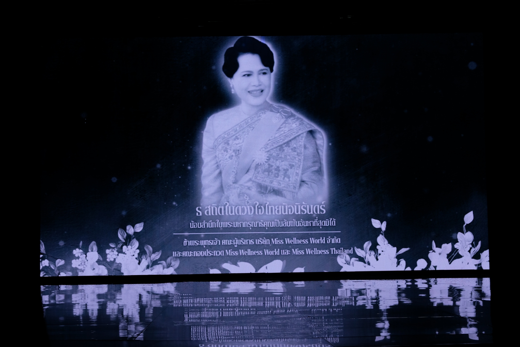 โดยก่อนเริ่มการประกวดสาวงามจาก 25 ประเทศทั่วโลกและผู้มีเกียรติทั้งห้องประชุมได้ร่วมยืนถวายอาลัยและแสดงความเคารพต่อสมเด็จพระนางเจ้าสิริกิติ์ พระบรมราชินีนาถ พระบรมราชชนนีพันปีหลวง