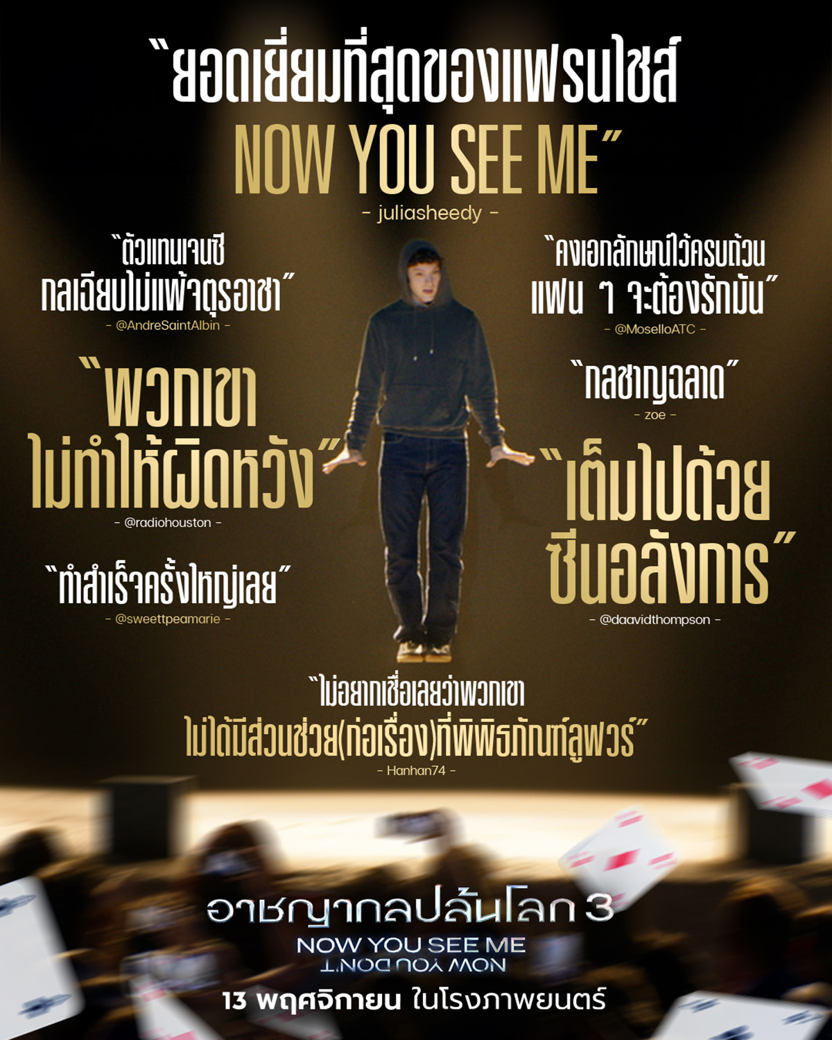 มาแล้ว! รีวิวชุดแรก “Now You See Me: Now You Don’t อาชญากลปล้นโลก 3” โกยเสียงชื่นชมถล่มทลาย การันตี “ยอดเยี่ยมที่สุดของแฟรนไชส์นี้” 13 พฤศจิกายนนี้