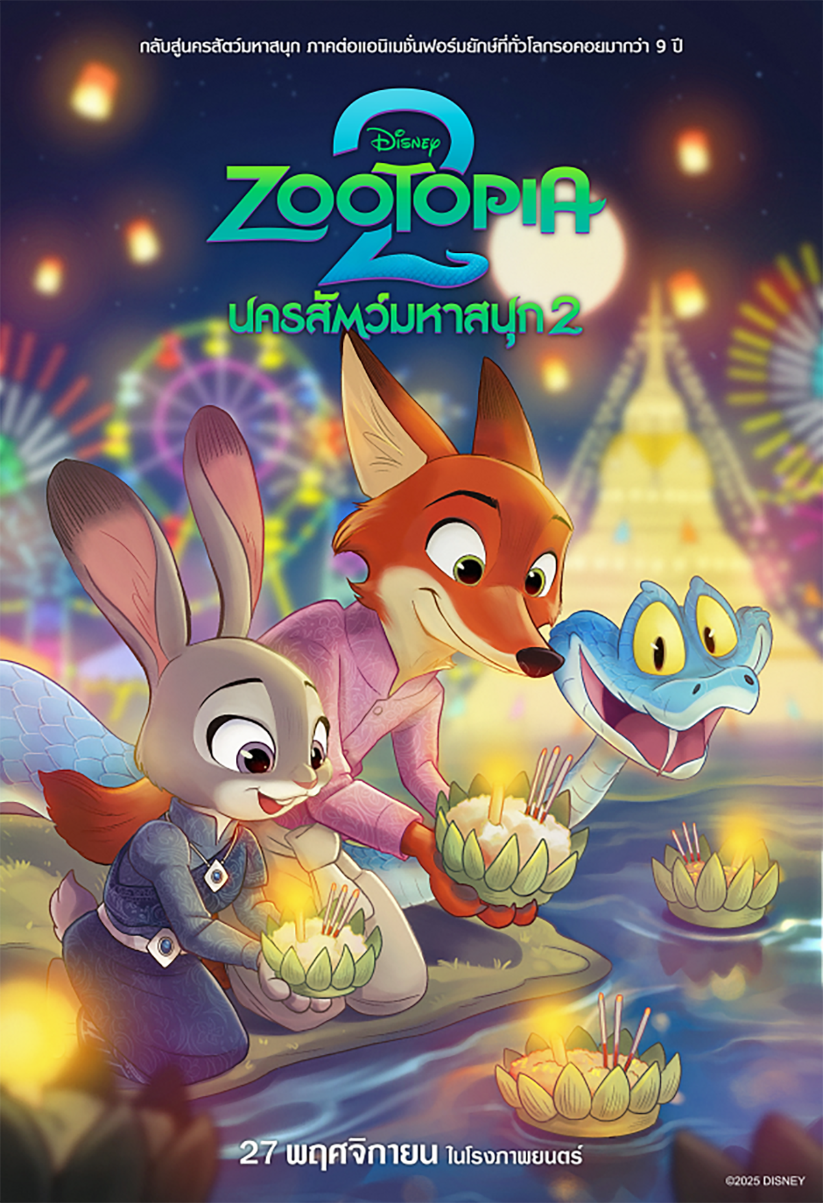 “จูดี้-นิค-แกรี” ในภาพยนตร์แอนิเมชันฟอร์มยักษ์ “Disney Animation’s Zootopia 2 นครสัตว์มหาสนุก 2” ร่วมเทศกาลลอยกระทง ก่อนพากันบุกโรงภาพยนตร์ทั่วไทย