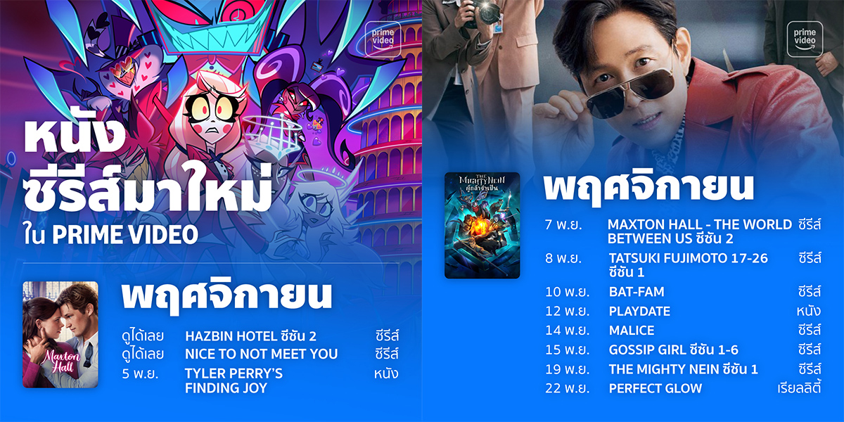 เช็กลิสต์ (ด่วน)! Prime Video เปิดม่านเดือนใหม่ มัดรวมโปรแกรมห้ามพลาด ทั้งซีรีส์และภาพยนตร์ ประจำเดือนพฤศจิกายน 2568