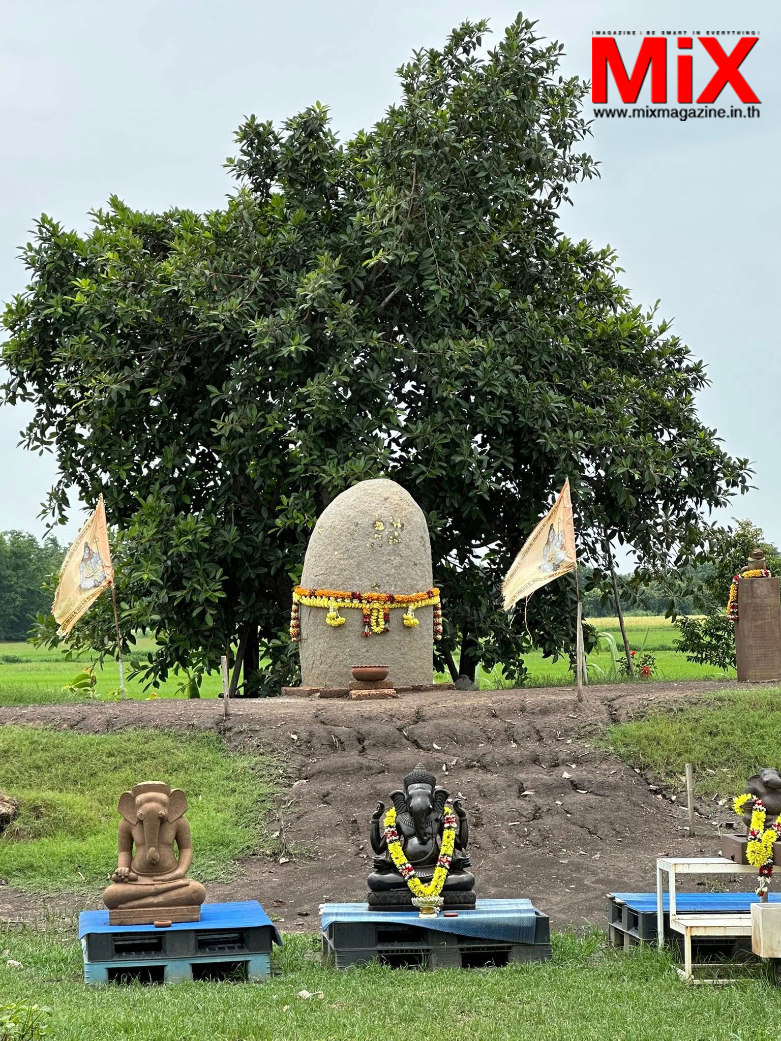 “สวยัมภูลึงค์หรือลึงคบรรพตเป็นศิวลึงค์ที่เกิดขึ้นเองจากธรรมชาติ ก่อนที่จะได้มาพระองค์บอกว่า “ต้องไปตามหาศิวลึงค์และสร้างมหาวิหารแห่งเรา” ซึ่งผมมารู้ภายหลังว่าสวยัมภูลึงค์คือหินที่เป็นรูปร่างศิวลึงค์ หลักนี้ได้มาจากพระอธิการมนตรี ฐิตวินโย วัดแก่งกลางดง จังหวัดนครราชสีมา จากการที่ท่านโพสต์ภาพทางโซเชียลมีเดีย ผมติดต่อไปถามท่านว่าได้มายังไง ท่านก็บอกว่าหินก้อนนี้มาจากตอนที่มีการตัดทางทำมอเตอร์เวย์