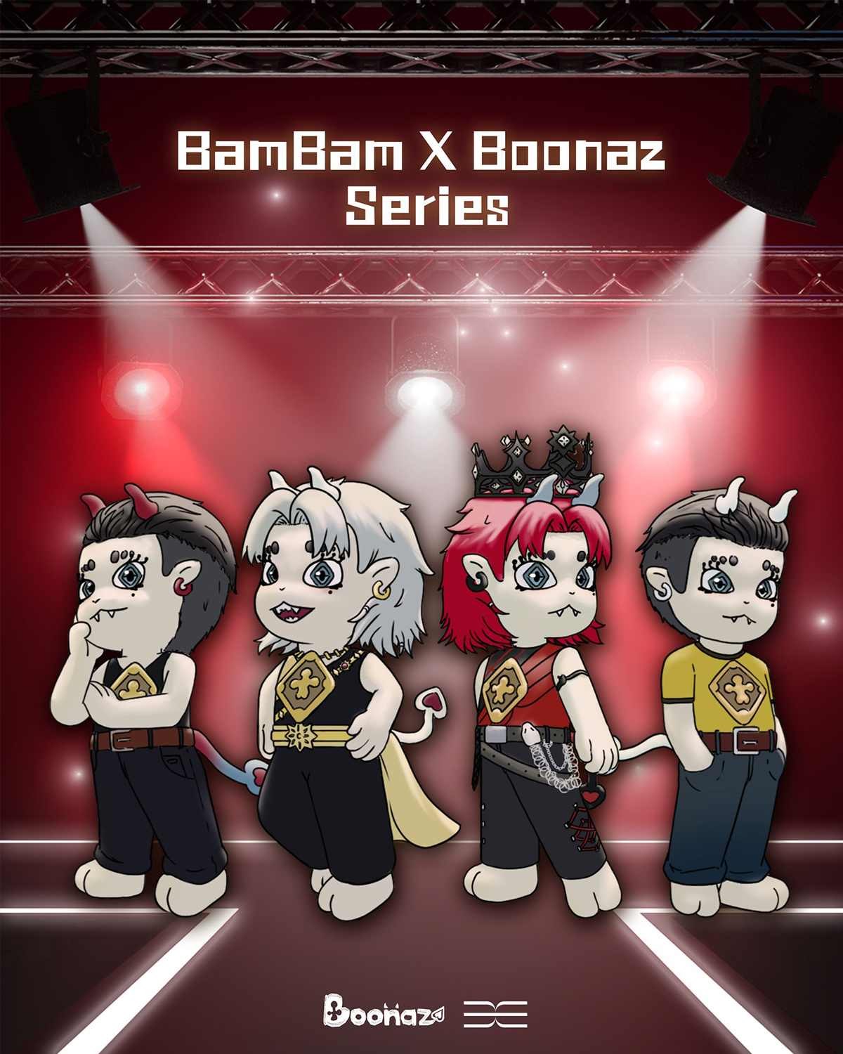 ไฮไลต์ของคอลเลกชันนี้ คือการร่วมงานกับไอค่อนระดับโลก “แบมแบม” กันต์พิมุกต์ ภูวกุล” หรือ BamBam GOT7 โดยการนำเสนอพลังความคิดสร้างสรรค์และสไตล์อันมีเอกลักษณ์ของเขา ซึ่งสอดคล้องกับจิตวิญญาณของ Boonaz อย่างสมบูรณ์แบบ แบมแบมไม่ได้เป็นเพียงศิลปิน แต่คือตัวแทนของ ‘ด้านแห่งแสงสว่าง’ ผู้ที่กล้าเปล่งประกายและซื่อสัตย์ต่อตัวเอง ซึ่งสะท้อนคอนเซ็ปต์ ‘The Courage to Express Yourself’ ได้อย่างชัดเจนที่สุด โดยแบมแบมยังมีส่วนร่วมในกระบวนการสร้างสรรค์อย่างใกล้ชิด ตั้งแต่การหารือเกี่ยวกับภาพลักษณ์หลัก (Key Visuals) ไปจนถึงการเสนอแนวคิดเพื่อเพิ่ม ‘พลังและเสน่ห์บนเวที’ ให้กับคาแรกเตอร์ Boonaz ทำให้มอนสเตอร์น้อยตัวนี้ดูมีชีวิตชีวาและเป็นสัญลักษณ์ของพลังบวกอย่างแท้จริง โดยในโปรเจกต์นี้ แบมแบมได้มีส่วนร่วมในกระบวนการครีเอทีฟ ตั้งแต่การร่วมออกแบบ Key Visual การเลือกโทนสีของคาแรกเตอร์ ไปจนถึงแนวคิดของแคมเปญ เพื่อให้ Boonaz ถ่ายทอดพลังและความมีชีวิตชีวาในแบบ “on-stage energy”