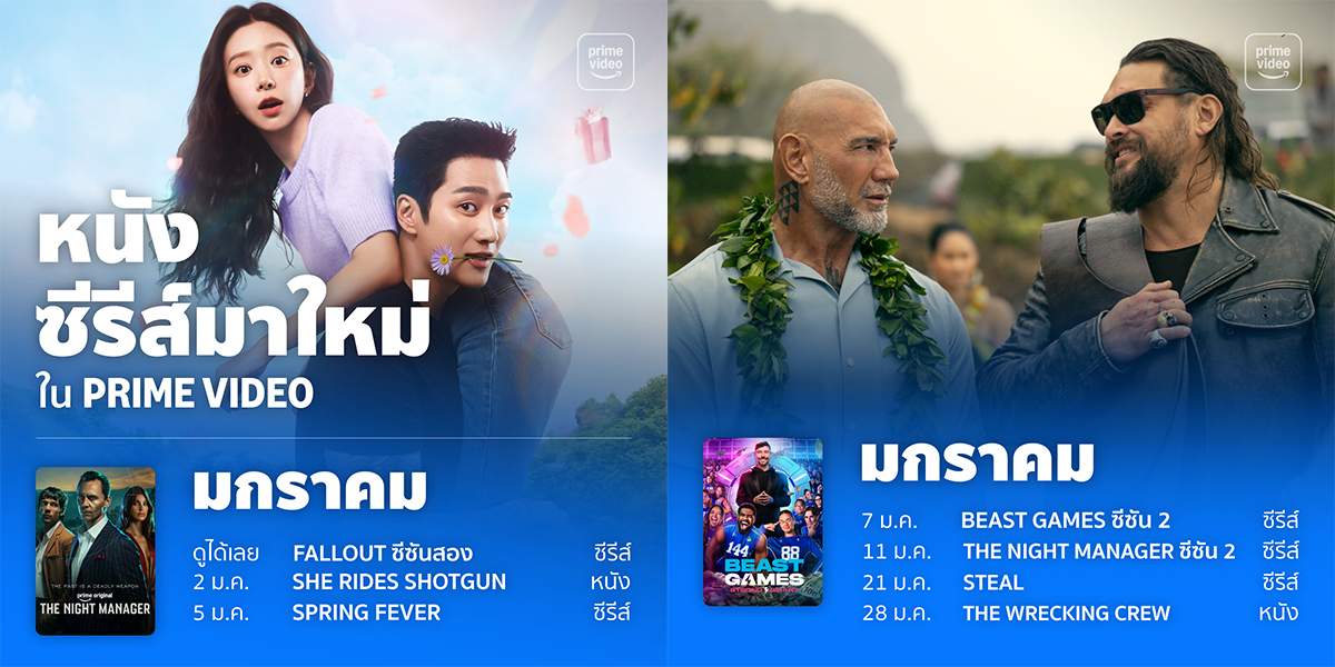 สตรีมรับต้นปี! Prime Video เปิดม่านปี 2569 มัดรวมโปรแกรมห้ามพลาด ทั้งซีรีส์และภาพยนตร์ ประจำเดือนมกราคม