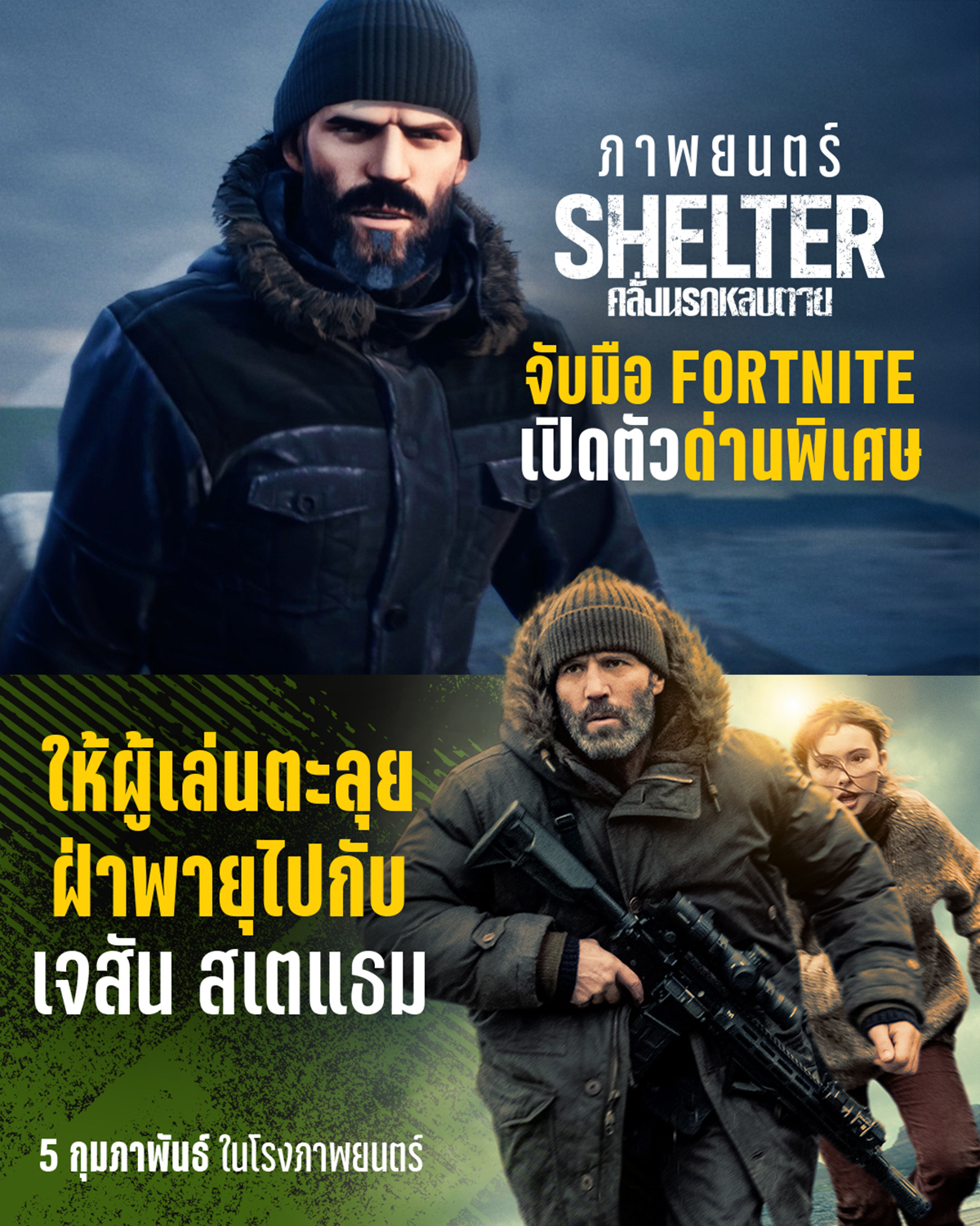 ยกระดับความมันส์ขั้นสุด “Shelter คลั่งนรกหลบตาย” คอลแลบเกมระดับโลก “Fortnite” ก่อนชม “เจสัน สเตแธม” เปิดศึกเดือดคลั่ง ซัดคนชั่วให้ยับ 5 กุมภาพันธ์นี้