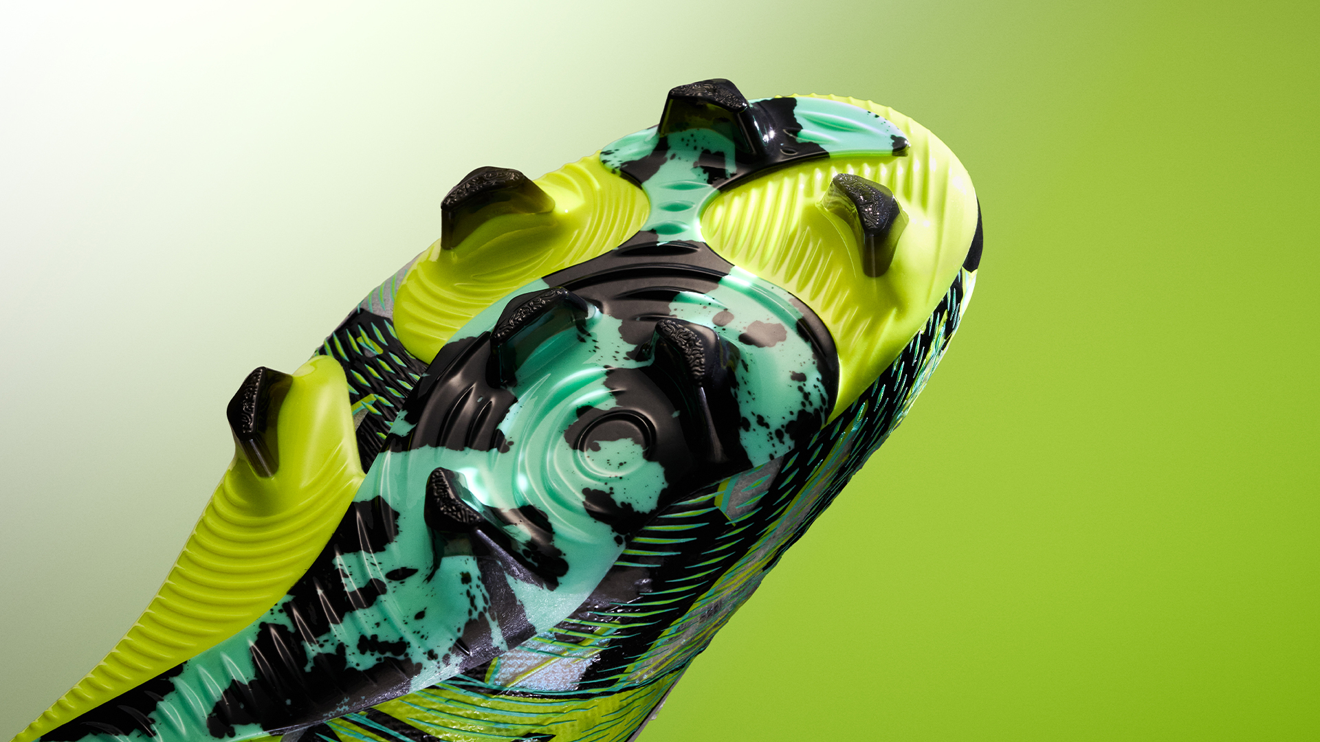 บริเวณพื้นรองเท้าชั้นนอกใช้พื้น FLEXGILITY ที่มาพร้อมการจัดวางปุ่มแบบวงกลมและโครงสร้างความหนาแน่น 2 ระดับ ที่ออกแบบมาเพื่อการเคลื่อนไหวแบบ 360 องศาได้อย่างคล่องแคล่ว รองรับการเปลี่ยนทิศทางอย่างฉับไว และการหมุนตัวอย่างรวดเร็ว ช่วยให้นักเตะคงความคาดเดาไม่ได้และสร้างความปั่นป่วนให้แนวรับคู่แข่ง ถ่ายทอดความลื่นไหลและจังหวะการเล่นที่เป็นเอกลักษณ์ของฟุตบอลเชิงสร้างสรรค์