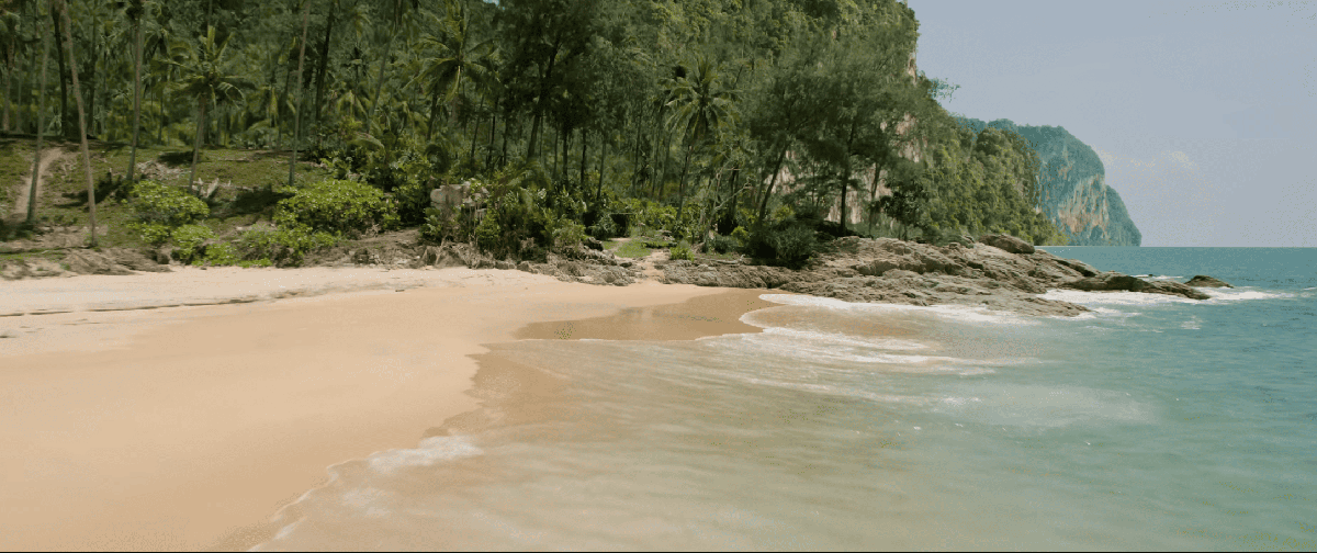 นอกจากนี้เพื่อเสริมความยิ่งใหญ่ให้กับชายหาดตัวเอก ทีมวิชวลเอฟเฟกต์ยังได้ถ่ายภาพหน้าผาสูงชันในประเทศไทย แล้วนำไปขยายเพิ่มเติมให้เกิดแนวสันเขาสูงราว 200 ฟุต ซึ่งมีความสำคัญอย่างยิ่งต่อฉากดราม่าที่ทรงพลังที่สุดของภาพยนตร์
