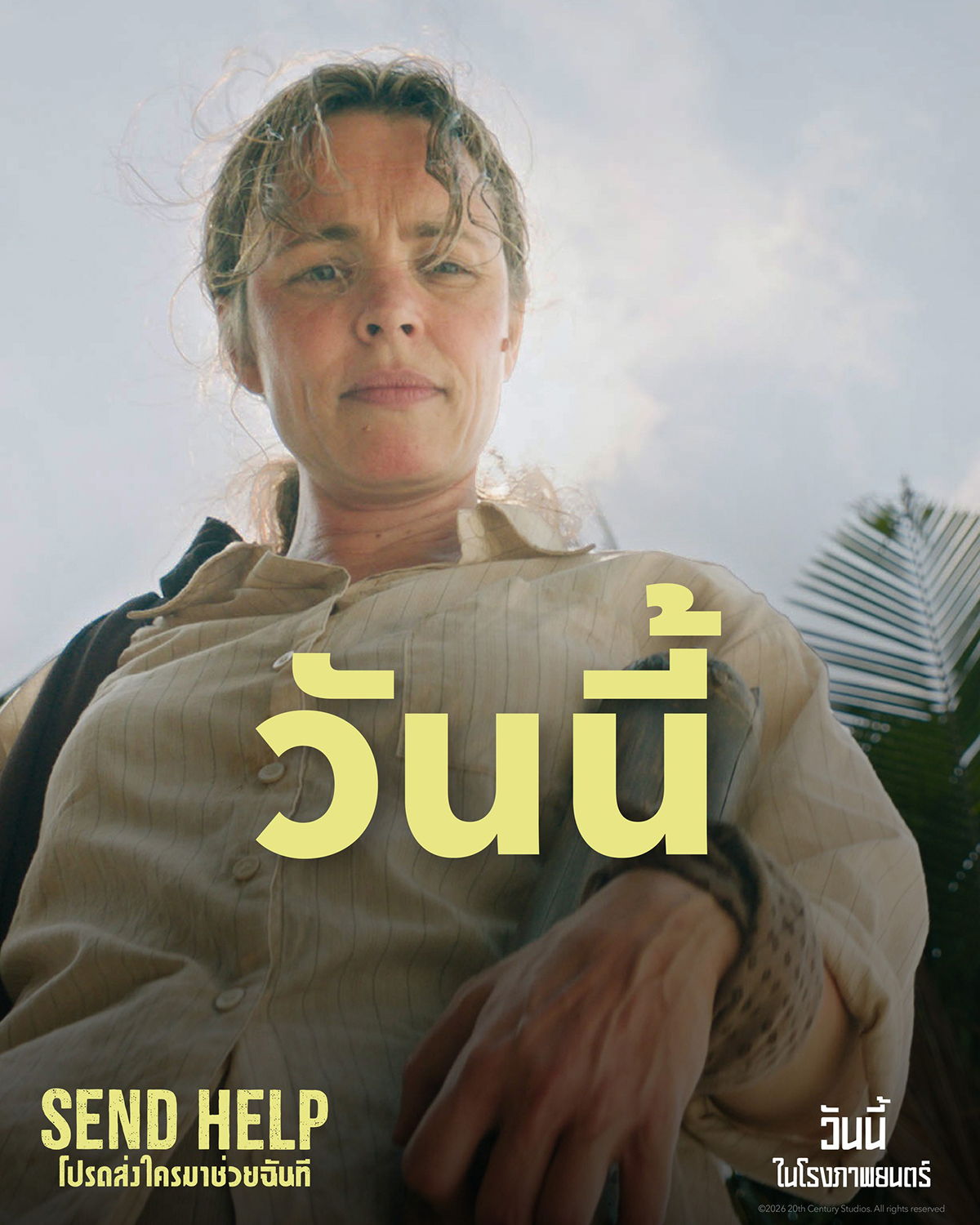 อย่าพลาด ไปลุ้นระทึกกับเรื่องราวกระตุกขวัญสั่นประสาทของสาวออฟฟิศและหัวหน้าสุดเฮงซวยบนเกาะร้างในประเทศไทย “SEND HELP โปรดส่งใครมาช่วยฉันที” เข้าฉายแล้ววันนี้ ในโรงภาพยนตร์ทั่วประเทศ