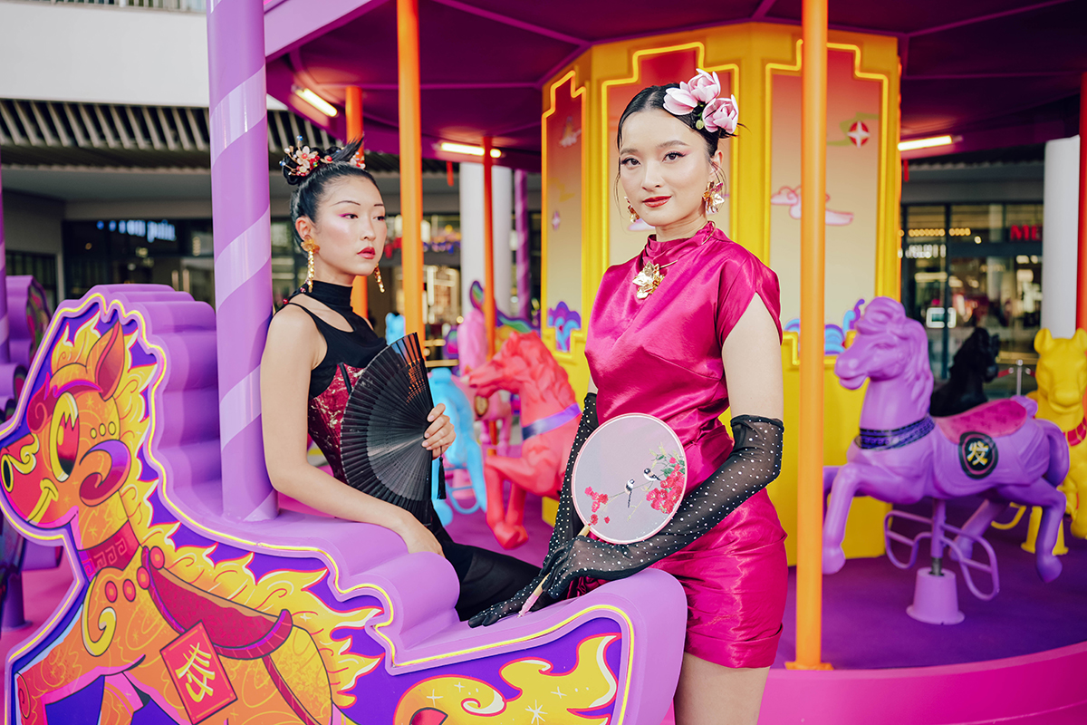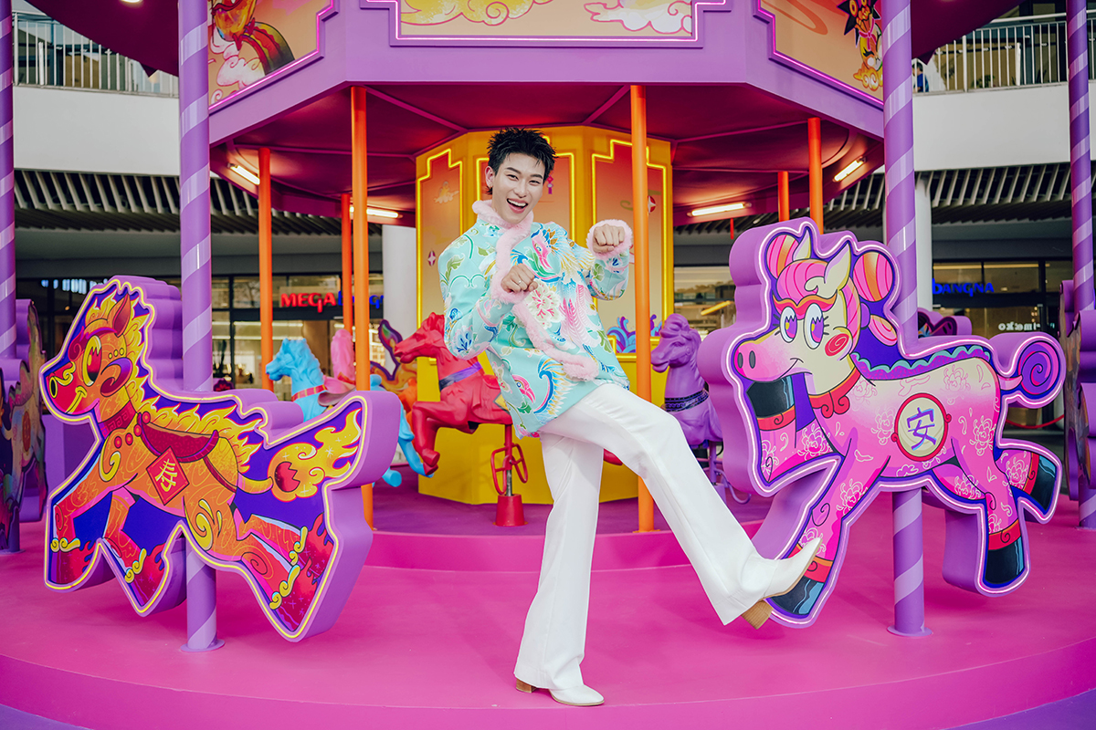 ภายใต้ความร่วมมือนี้ ตุ๊–ณัชพล ตุ๊เสงี่ยม อาร์ตทิสต์คนดังได้ถ่ายทอดอาร์ตอินสตอลเลชันขนาดใหญ่ในชื่อ“MEGA LAND OF FUN AND FORTUNE”เพื่อเป็นดินแดนที่ทุกๆคนสามารถมาร่วมแบ่งปันความรักความสนุกและมีโมเมนต์ดีๆได้ในดินแดนมงคลนี้ที่อาบไปด้วยแสงสีฉูดฉาดสดใส รวมไปถึง "ม้านำโชคทั้งแปดตัว"สื่อถึงความสำเร็จจากทั้ง 8 ทิศโดยเลขแปดถือเป็นสัญลักษณ์แห่งความมั่งคั่ง ร่ำรวย และความเจริญรุ่งเรือง ถ่ายทอดผ่านสีสันสดใส ลวดลายร่วมสมัย ซึ่งม้าแต่ละตัวถูกออกแบบให้มีเอกลักษณ์ สีสัน และความหมายเฉพาะตัว สื่อถึงความมงคลในหลากหลายมิติ ได้แก่ม้าไฟสื่อถึงอายุที่ยืนยาวราวกับเปลวไฟในจิตใจที่โชติช่วงไม่มีวันมอดดับ, ม้าหมวย ตัวแทนแห่งความสดใส เป็นสุข เนื่องจากได้รับพรแห่งสันติ และความปลอดภัย, ม้าตี๋น้อย สื่อถึงความสนุกสนานและพลังแห่งความปรีดา, ม้าทองร่างกายที่เปล่งประกายหรูหราดั่งทองคำแท่ง สัญลักษณ์แห่งความร่ำรวย, ม้าดอกไม้ เบ่งบานสดใส จากพรแห่งการเติบโต ดั่งทุกดอกไม้บานสะพรั่ง, ม้าฉลองได้รับพรแห่งความโชคดี มีลวดลายเป็นพลุและประทัด อันเป็นการสัญลักษณ์แห่งการเฉลิมฉลองของชาวจีนเพื่อความนำโชค, ม้าโคมไฟ ตัวแทนแห่งความเจริญรุ่งเรือง ซึ่งโคมไฟแดงของจีนคือสัญลักษณ์ของความรุ่งเรืองที่ส่องสว่างในยามมืดมิด และ ม้าอู้ฟู่ที่ได้รับพรจากความโชคดี ซึ่งมีแรงบันดาลใจมาจากเทพคีรินและผิวปลาคาร์ฟ