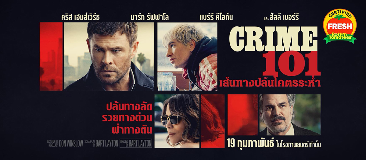 “CRIME 101 - เส้นทางปล้นโคตรระห่ำ” ภาพยนตร์แอ็คชั่น อาชญากรรม ผสมกลิ่นอายแบบฟิล์มนัวร์ จาก แอมะซอน เอ็มจีเอ็ม สตูดิโอส์ ดัดแปลงจากนวนิยายชื่อดังของ ดอน วินสโลว์ เขียนบทและกำกับโดย บาร์ต เลย์ตัน ผู้สร้างภาพยนตร์ American Animals และ The Imposter ถ่ายทอดเรื่องราวของ หัวขโมยผู้ลึกลับ ที่ลงมือปล้นทรัพย์สินมูลค่าสูงตามทางหลวงสาย 101 จนกลายเป็นปริศนาที่ตำรวจไม่อาจคลี่คลายได้ กับการปล้นครั้งสุดท้ายและครั้งที่ใหญ่ที่สุดในชีวิต ที่นำพาคนแปลกหน้าอีก 2 คนเข้ามาพันกันอยู่ในเกมจารกรรมครั้งนี้ไม่ว่าจะเป็น หญิงสาวนายหน้าบริษัทประกัน ที่ชีวิตบีบบังคับให้ต้องร่วมมือกับเขา นักสืบผู้มุ่งมั่น ในการตามล่าเขาอย่างไม่ลดละ เมื่อเส้นแบ่งระหว่าง “ผู้ล่า” และ “ผู้ถูกล่า” เริ่มเลือนหายไป ทั้งสามคนต้องเผชิญหน้ากับราคาที่ต้องจ่าย จากการตัดสินใจของตัวเอง และความจริงที่ว่า “พวกเขาไม่มีทางหันหลังกลับได้อีกแล้ว” นำแสดงโดย คริส เฮมส์เวิร์ธ, ฮัลลี เบอร์รี, มาร์ก รัฟฟาโร่, แบร์รี คีโอกัน, โมนิกา บาร์บาโร, คอรี ฮอว์กินส์, เจนนิเฟอร์ เจสัน ลีห์ และ นิก โนลเต้