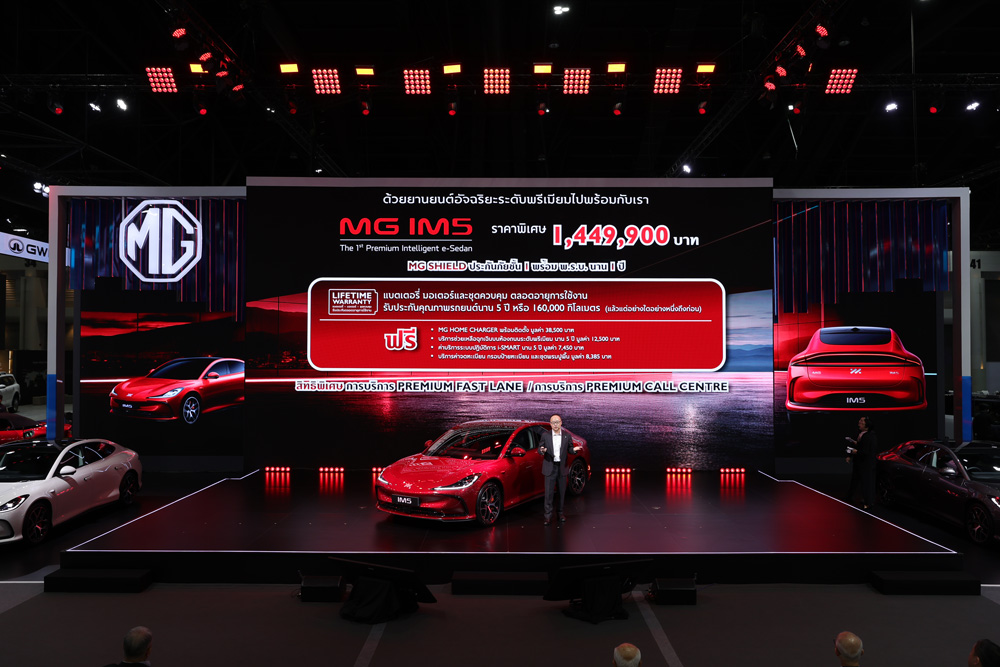 บริษัท เอสเอไอซี มอเตอร์ – ซีพี จำกัด และ บริษัท เอ็มจี เซลส์ (ประเทศไทย) จำกัด ผู้ผลิตและผู้จำหน่ายรถยนต์เอ็มจีในประเทศไทย เปิดตัว MG IM5 ยนตรกรรมซีดานไฟฟ้าระดับพรีเมียมในฐานะ “The 1st Premium Intelligent e-Sedan” ที่พัฒนาขึ้นสำหรับผู้บริโภคที่มองหายนตรกรรมไฟฟ้าที่สะท้อนตัวตน และมองหาเทคโนโลยีที่ไม่ยึดติดกับกรอบเดิม ภายใต้แนวคิด “I AM WHO I AM” ผสานรวมความลงตัวของ ELEGANCE – ELECTRIC – ENTELLIGENT สู่การเป็นสปอร์ตคูเป้ซีดานที่มอบประสบการณ์การขับขี่ที่ปราดเปรียว ด้วยระยะทางวิ่งกว่า 860 กิโลเมตร ถือเป็นรถ EV อีกหนึ่งรุ่นที่วิ่งได้ไกลที่สุดในคลาสด้วยราคาพิเศษ 1,449,900 บาท พร้อมการรับประกันแบตเตอรี่แรงเคลื่อนสูง ชุดมอเตอร์ขับเคลื่อน และชุดควบคุมมอเตอร์ขับเคลื่อนตลอดอายุการใช้งาน (EV LIFETIME WARRANTY) อีกทั้งภายในงาน บางกอก อินเตอร์เนชันแนล มอเตอร์โชว์ ครั้งที่ 47 เอ็มจี ยังได้นำยนตรกรรมหลากหลายรุ่นมาจัดแสดง พร้อมข้อเสนอพิเศษอีกมากมาย เพื่อมอบความคุ้มค่าและประสบการณ์ที่เหนือระดับให้กับลูกค้าที่สนใจเป็นเจ้าของรถยนต์ เอ็มจี