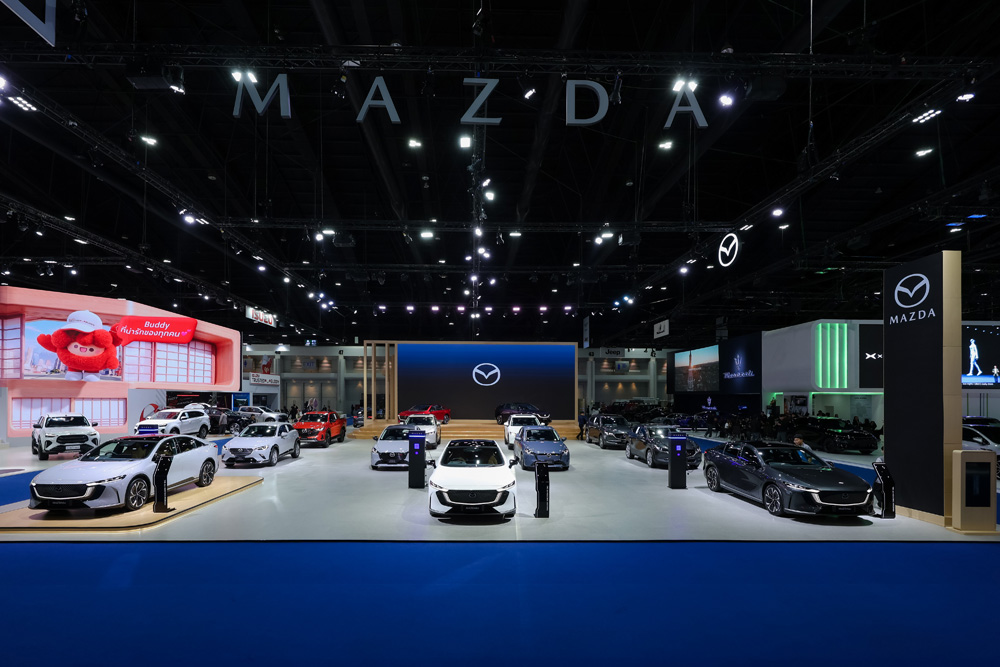 สำหรับการออกแบบบูธมาสด้าครั้งนี้ ได้ถ่ายทอดคอนเซ็ปต์ “Joy of Driving Creates a Richer Life” เพื่อถ่ายทอดปรัชญาแบรนด์ Joy Drives Lives เพราะมาสด้าเชื่อว่า “ความสุขในการขับขี่รถยนต์” (Joy of Driving) จะนำไปสู่ “ความสุขในการใช้ชีวิต” (Joy of Living) และมาสด้าตั้งใจส่งมอบความสุขเหล่านี้ไปยังลูกค้าทุกคน เพื่อให้ทุกวันขับเคลื่อนไปข้างหน้าด้วยรอยยิ้มและการใช้ชีวิตให้มีความหมาย มาสด้าได้เนรมิตพื้นที่ในบูธเป็น Experience Zone เพื่อให้ลูกค้าได้มาร่วมกิจกรรมความสุข นอกจากนี้ภายในบูธยังมีการจัดแสดงพื้นที่เพื่อบอกเล่าเรื่องราวของรถยนต์มาสด้า ที่มุ่งมั่นส่งมอบให้กับลูกค้ามาอย่างยาวนานจนถึงปัจจุบัน