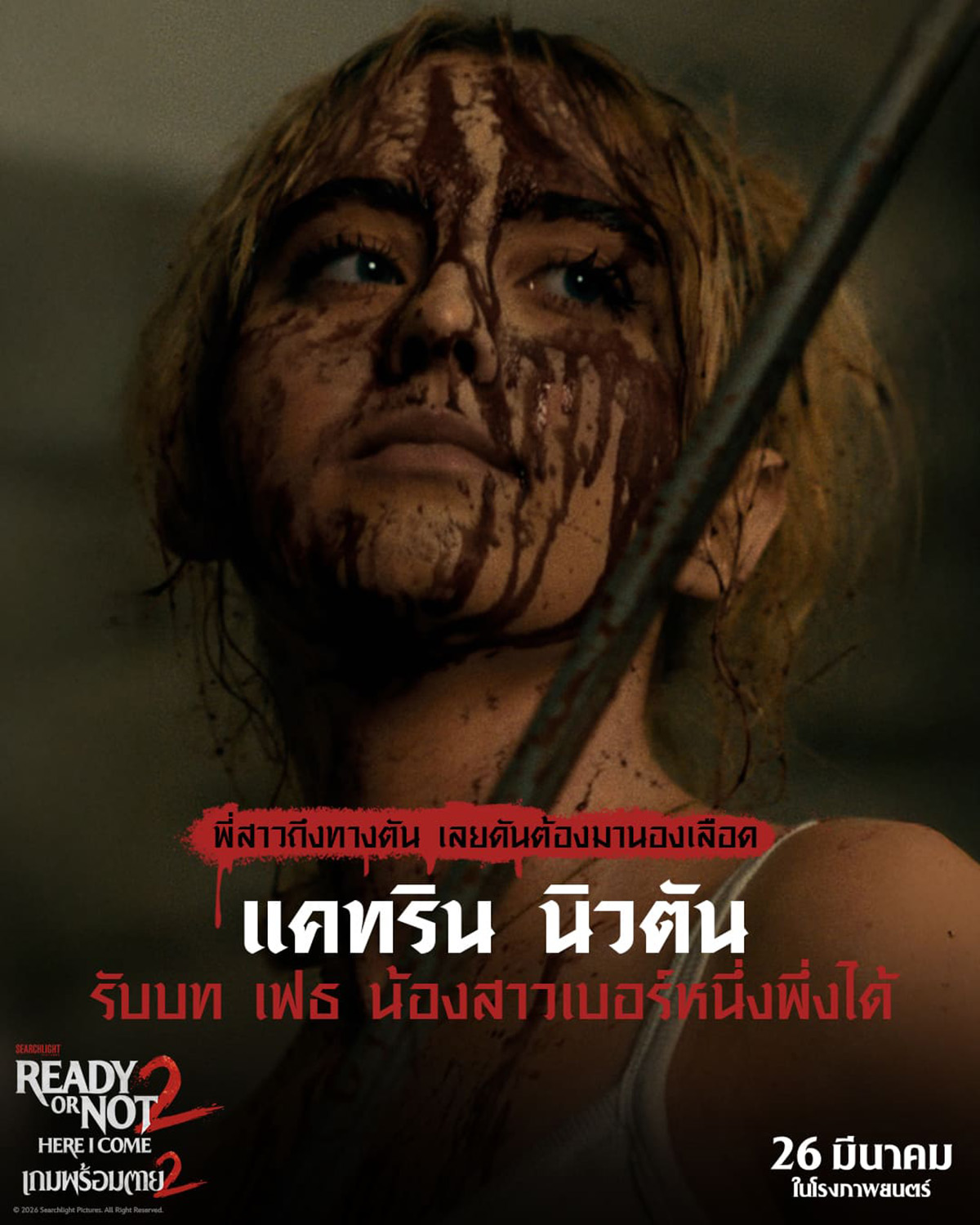 หนึ่งในความพิเศษของ “Ready or Not: Here I Come เกมพร้อมตาย 2” คือการเปิดตัวละครสำคัญที่จะเปลี่ยนโครงสร้างของเกมอย่าง “เฟธ” (Faith) น้องสาวต่างแม่ที่ห่างเหินของ “เกรซ” (Grace) โดยบทนี้ได้ Kathryn Newton นักแสดงสาวดาวรุ่งชื่อดัง มาโชว์ฝีมือสายบู๊ เสริมทัพความเดือดให้ผู้ชมได้มันยิ่งกว่าเดิม ซึ่งด้วยภูมิหลังของเฟธ ทำให้การปรากฏตัวของเธอไม่เพียงเป็นการเพิ่มตัวละครใหม่ แต่ยังเปลี่ยนโครงสร้างของเรื่องให้กลายเป็นการขับเคลื่อนด้วยตัวละครคู่ ที่ต้องเผชิญทั้งอดีตที่ยังไม่คลี่คลาย ความคับข้องใจ และการพึ่งพากันอย่างไม่เต็มใจ
