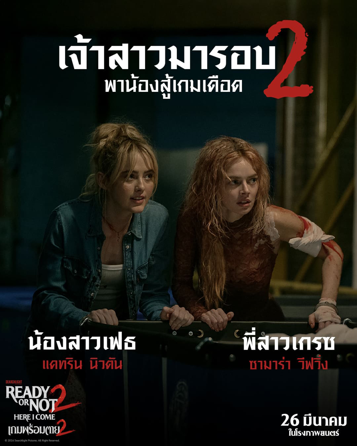 ภาพจำของ Ready or Not คือภาพของเกรซในชุดเจ้าสาวที่โชกไปด้วยเลือด ซึ่งการกลับมาครั้งนี้เธอยังคงมาในชุดเดิม โชกเลือดเหมือนเดิม และรับบทโดย Samara Weaving นักแสดงมากฝีมือคนเดิม เพิ่มเติมคือความเป็นเกรซที่ไม่เหมือนเดิม เพราะเธอคือ Final Girl ที่รอดชีวิตจากเกมสุดบ้าคลั่งมาได้เพียงหนึ่งเดียว และในภาคนี้ เธอไม่ได้เป็นแค่เหยื่ออีกต่อไป แต่ต้องสู้เพื่อเดิมพันที่สูงกว่า แถมยังต้องเอาชีวิตรอดพร้อมกับปกป้องคนสำคัญในชีวิตของเธอ จึงน่าลุ้นว่าด้วยสัญชาตญาณการเอาตัวรอดแบบมนุษย์ธรรมดาทั่วไป จะช่วยให้เกรซเอาชนะเกมนี้ได้อีกหรือไม่