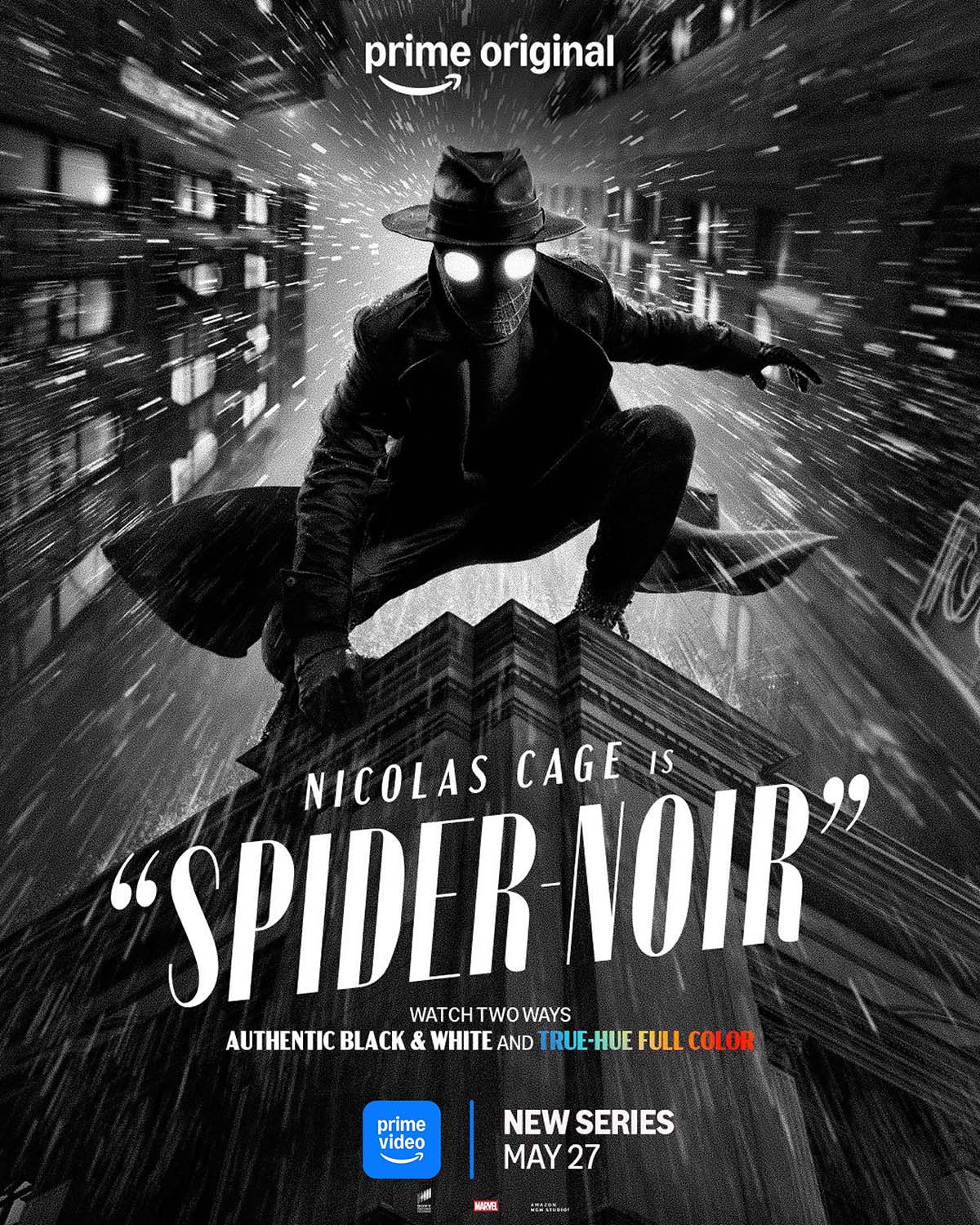 Prime Video ปล่อยตัวอย่างอย่างเป็นทางการของ “Spider-Noir สไปเดอร์-นัวร์: ไอ้แมงมุมพันธุ์นรก” ซีรีส์ที่หลายคนตั้งตารอคอย นำแสดงโดย Nicolas Cage กับการรับบทนำในซีรีส์โทรทัศน์เป็นครั้งแรกในชีวิต ผลิตโดย Sony Pictures Television เพื่อให้รับชมทาง Prime Video โดยซีรีส์จะเข้าสตรีมบน Prime Video ในมากกว่า 240 ประเทศและเขตแดนทั่วโลก ในวันที่ 27 พฤษภาคม 2569 ทั้งนี้ ความพิเศษที่หาไม่ได้จากที่ไหน คือนี่เป็นครั้งแรกที่ผู้ชมสามารถเลือกประสบการณ์การรับชมได้ 2 รูปแบบตามความชอบ ได้แก่ เวอร์ชั่นขาว-ดำ (Authentic Black & White) และ เวอร์ชั่นสีจริง (True-Hue Full Color)